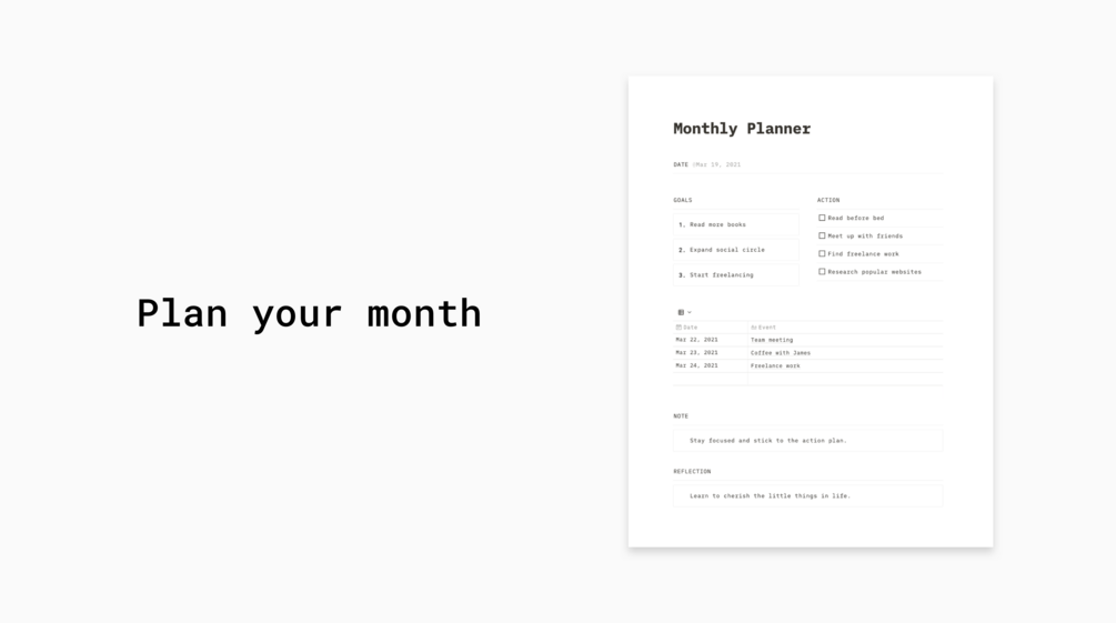 Include daily planner, weekly planner and monthly planner.